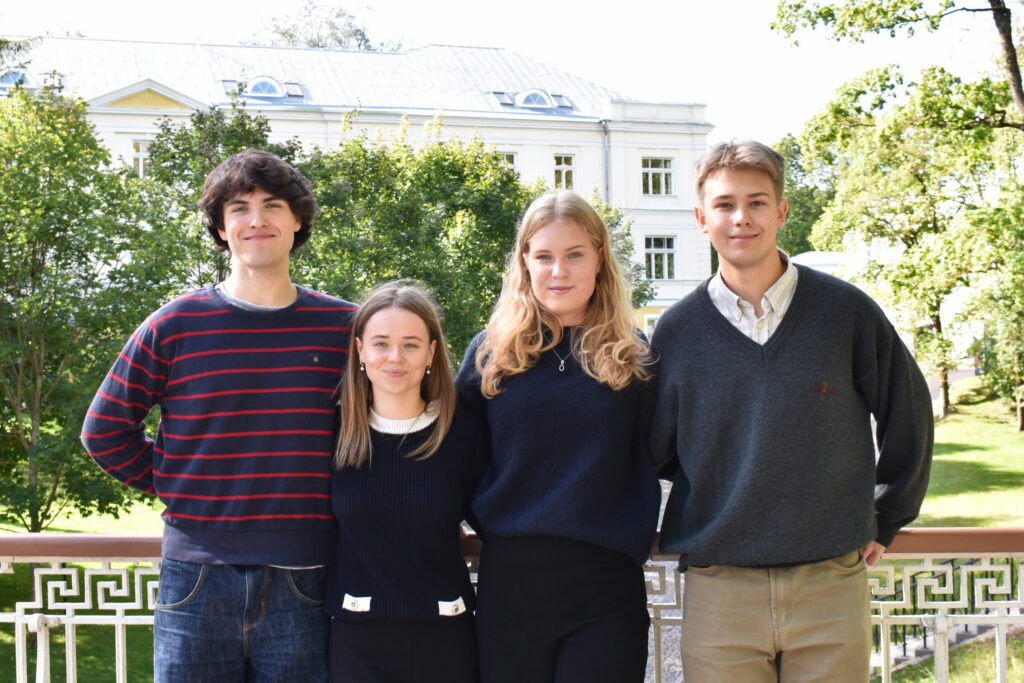 President Evaliis Läll (vasakult teine), asepresidendid Getter Veber (paremalt teine) ja Joonas Markus Meiorg (paremal) ning kantsler Ekke Pärtel Tiirmaa (vasakul).